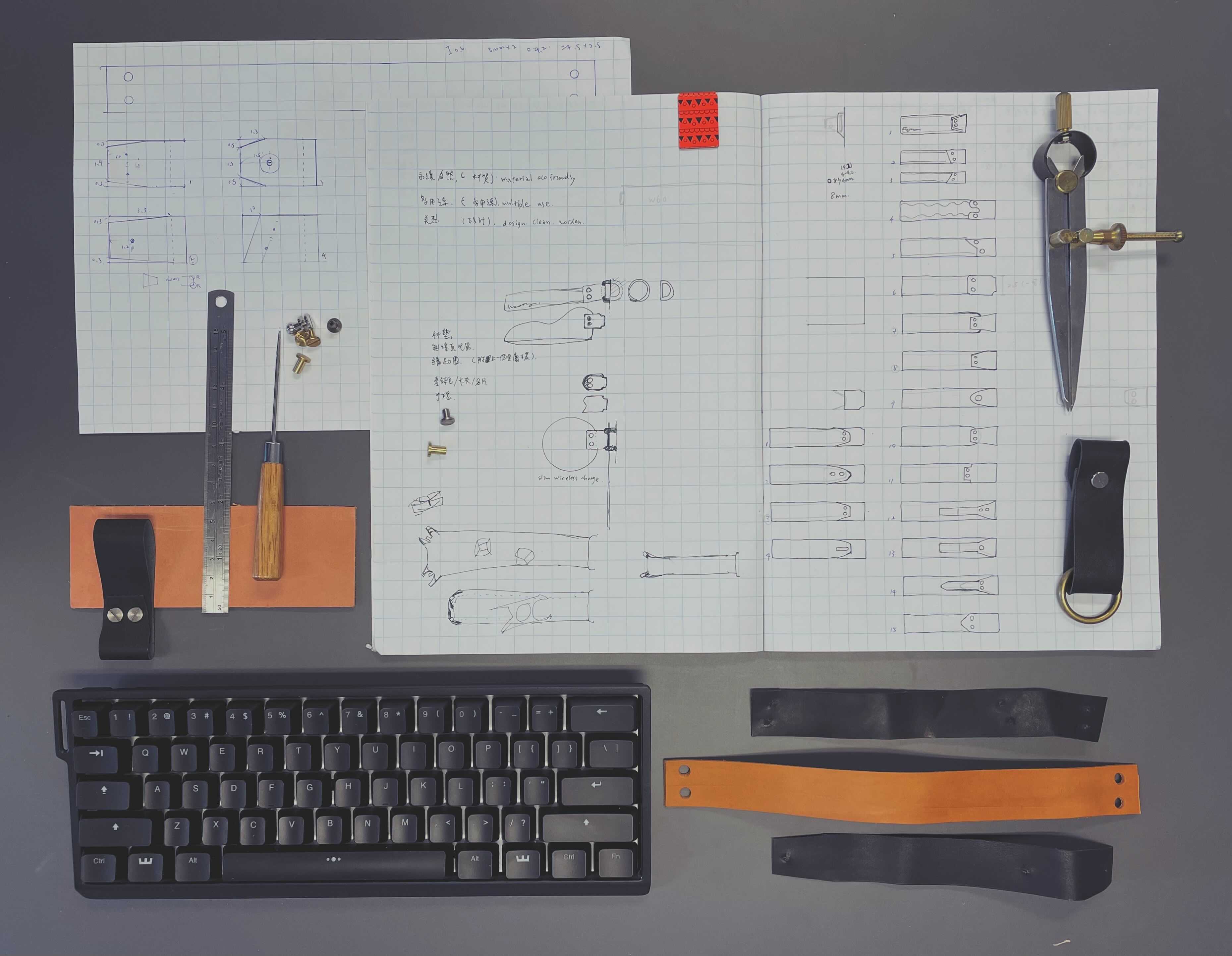 The leather strap development didn’t go at the desired development speed. The biggest hurdle was the design. We wanted to approach it a bit differently to inspire more creativity on how you can attach something to the keyboard clip. My wife (familiar with handcrafting leather) made several suggestions based on feedback and made a few samples.