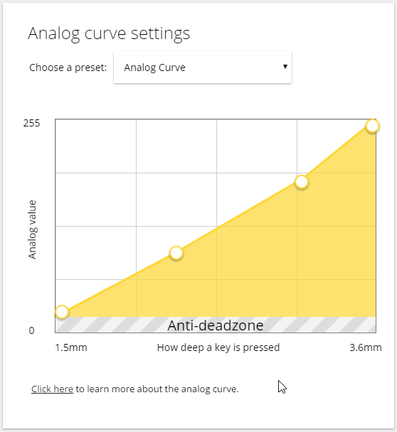 You might have read about it in an email update, but now it's public! The new analog curve is now available to everybody. There might be some bugs we've missed. Definitely let us know if you do on social@wooting.nl, discord or RedditThe new curve is a lot more clear, has a lot more control mechanisms and you can do some entirely new things with it. If you haven't played around with it yet, you'd definitely want to check out this how to video. Two use-case examples are inside. One in Overwatch and one in CS: GO.