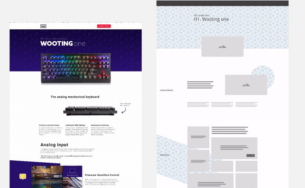 It’s finally here, our new website! If you haven’t already be sure to check it out. Let me take you through a short journey how it came to be what it is today. The old website only had to do a few thing:, let the world know we exist, explain what the Wooting one is and pre-order it. This was fine a year ago, but these days it’s very different. Now we have actual customers who want to know more about the keyboard they bought, have an issue that needs to be fixed, download the Wootility (software), get the latest news, etc. I can go on for days but the bottom line is our old website was lacking information and the information we had on there was outdated. Now the fun part, the normal approach to making a new website would be: