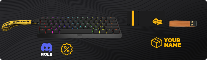 You can choose to have your first name, last name, discord handle, or anonymous permanently mentioned on the 60HE packaging box, on every box. This will be integrated into the graphics design.